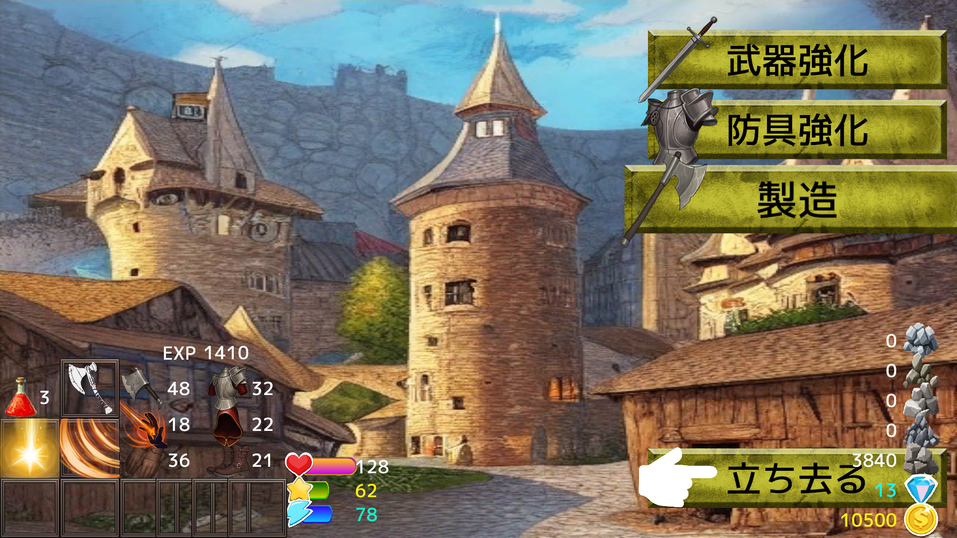 Improve your weapons and armor at the blacksmith, Weapons and armor made at the blacksmith can be upgraded by spending half of their materials and cost.